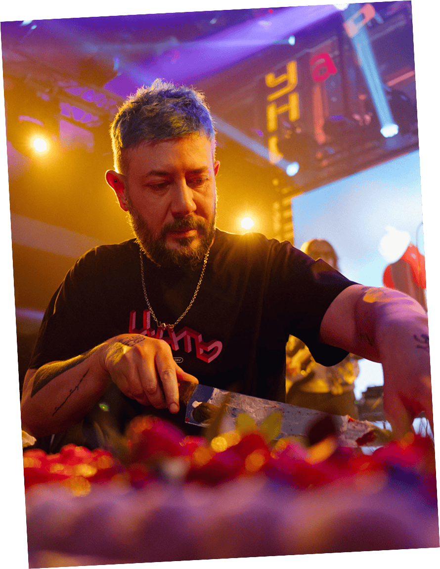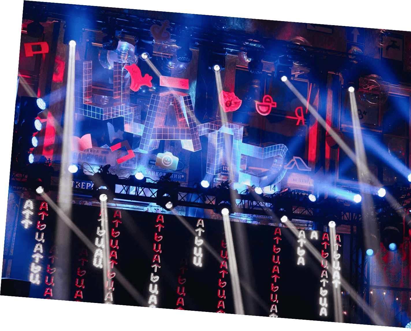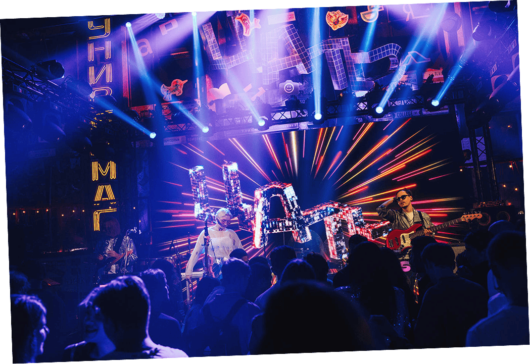 Для космически яркого и безбашенного оформления деньрожденной вечеринки в студии создали моушен-версию суперпопулярной айдентики ЦАТЬ. Единая графика предназначена для украшения любых поверхностей: она одинаково эффектно смотрится на видеопанели у главной сцены и на телеэкранах в иммерсивной фотозоне.