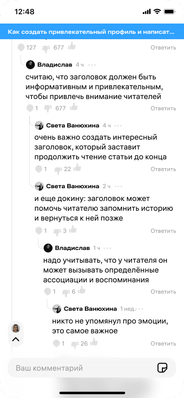 Комментарии — важнейший инструмент для формирования сообществ. Авторы создают комьюнити на основе своих постов и отреагировавших на них пользователей. Комментаторы делятся мнениями, голосуют за публикации и вступают в дискуссии.