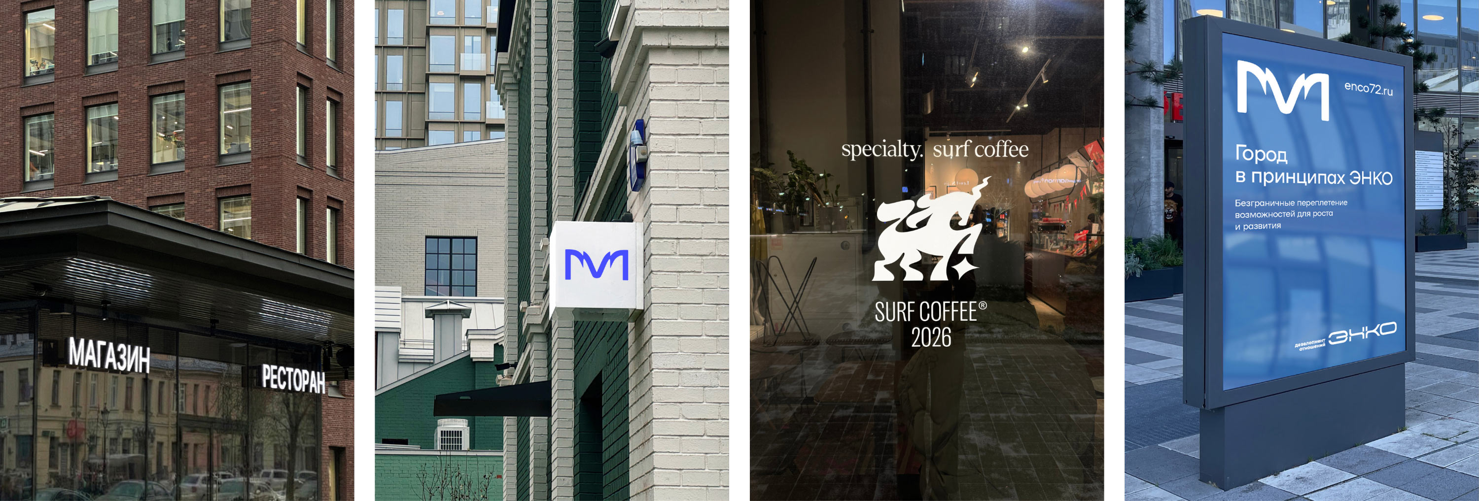 Фирменный звездный паттерн украшает торцы световых коробов, добавляя загадочности вывескам и лишний раз отсылая к названию жилого комплекса.