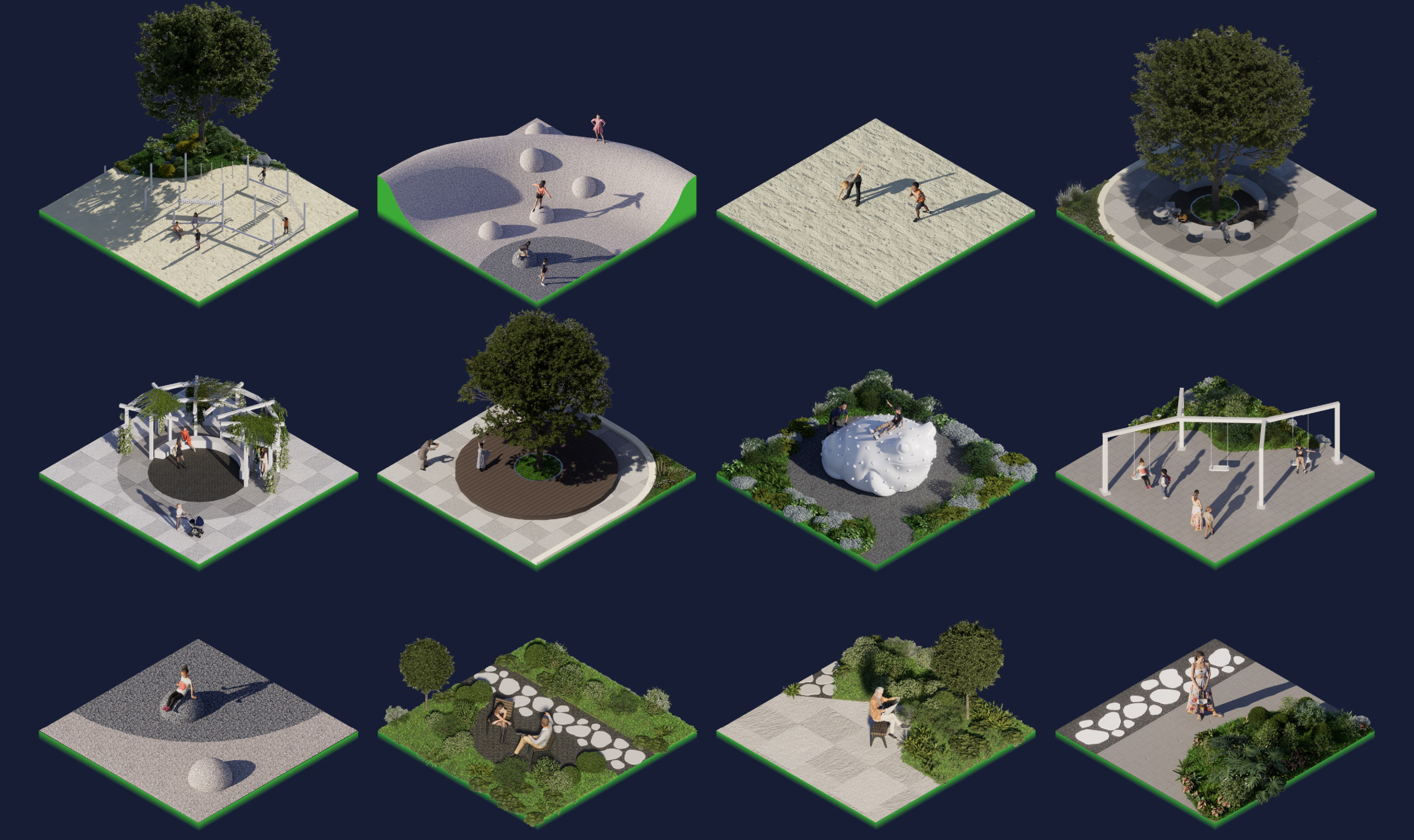 Также в студии разработали правила по благоустройству «Зеленой реки» — природной замкнутой системы, в которой объекты городской инфраструктуры связываются линейным парком. В основе концепции — деление «Зеленой реки» на «векторы» и объединение их с помощью градиента.
