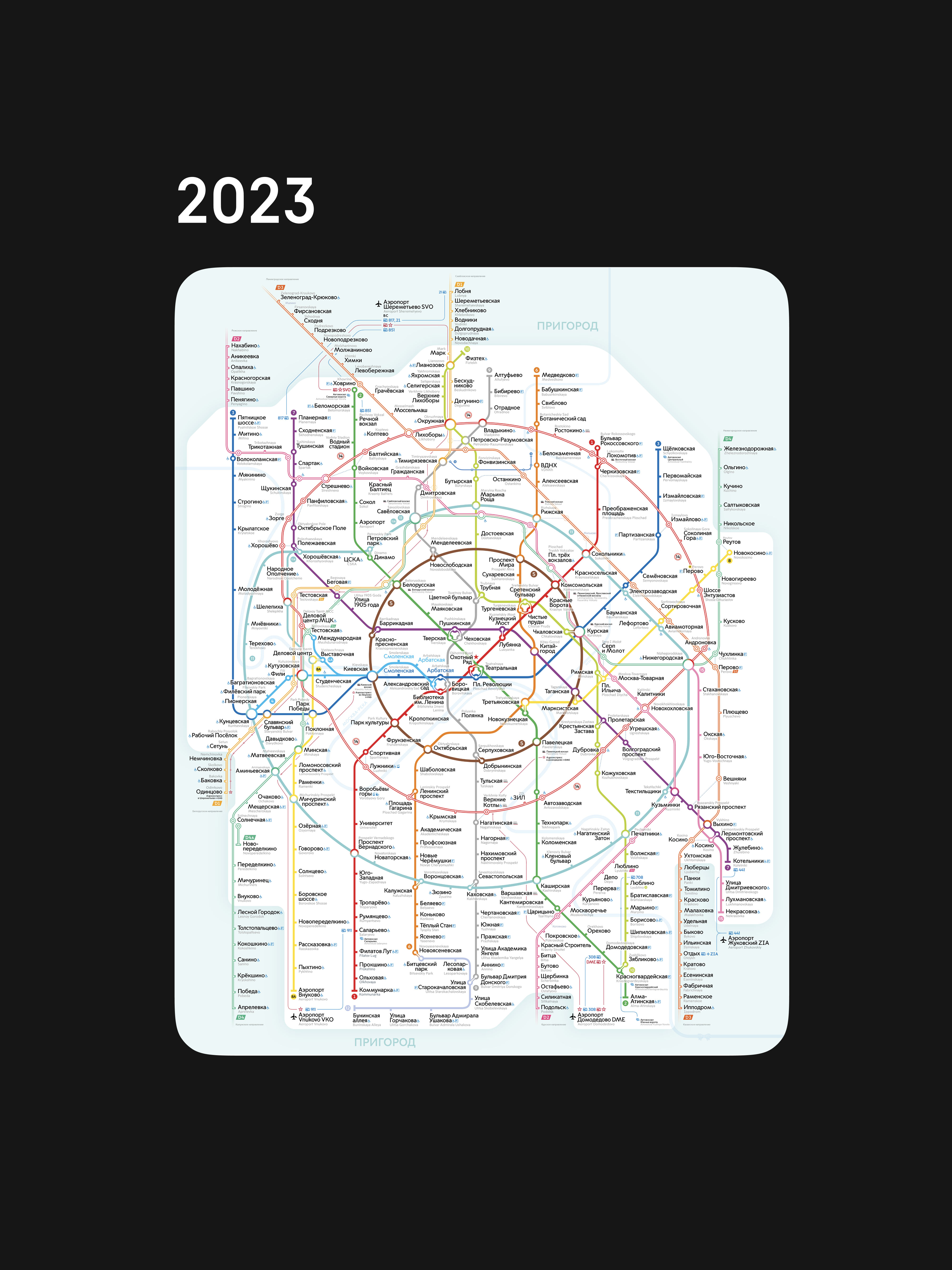 В мае 2025 года Московскому метрополитену исполнилось 90 лет. К этому событию в студии создали концепт схемы, раскрывающий перспективы развития столичного метро. В концепте нашлось место всем планам, актуальным на момент отрисовки.