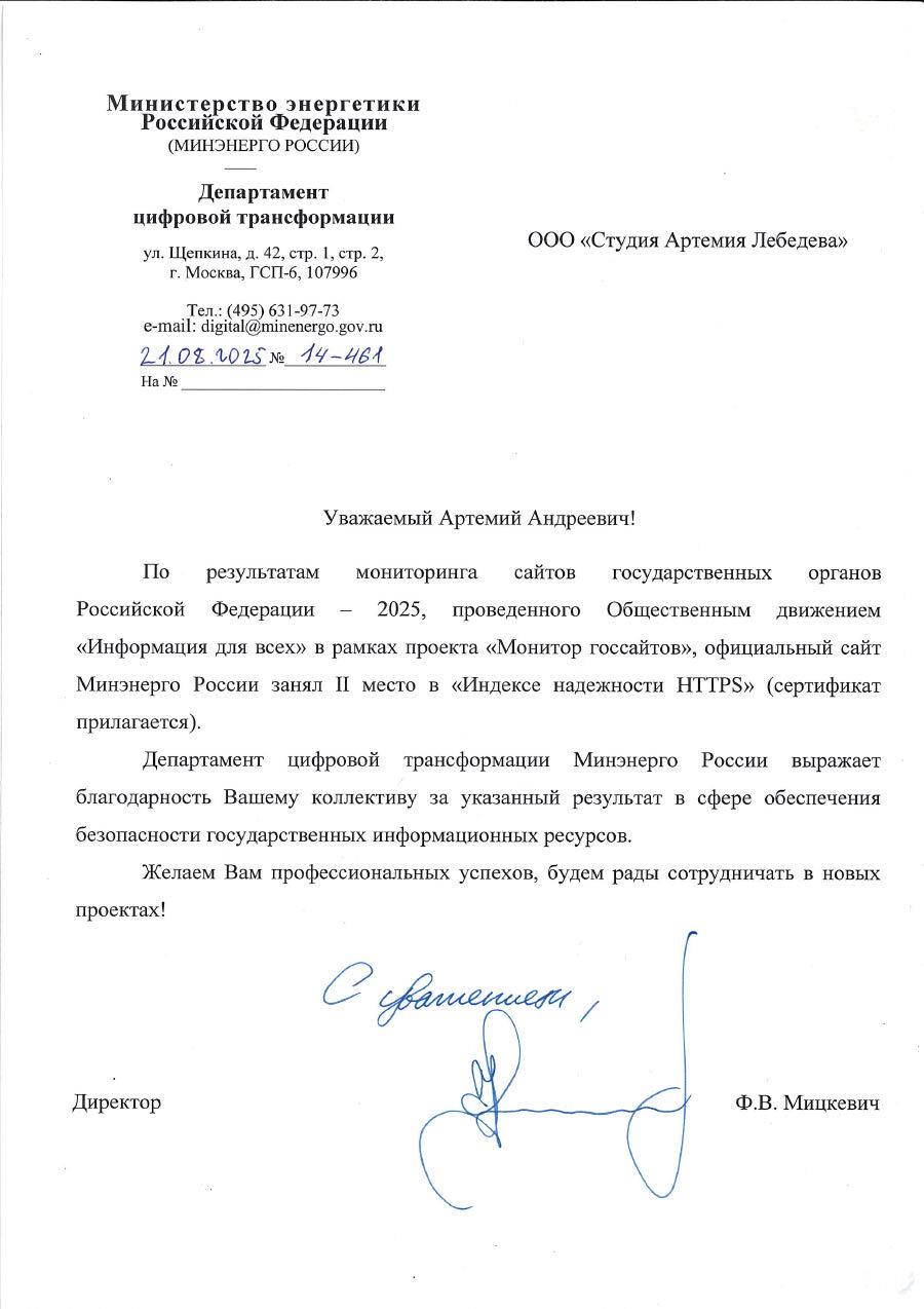 Отзывы о сайте Министерства энергетики Российской Федерации