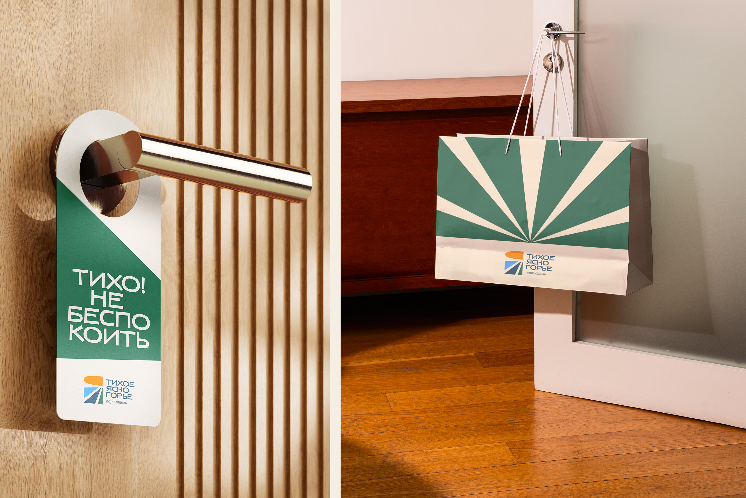 Парк-отель «Тихое Ясногорье» — место в Тульской области с густыми хвойными лесами, живописными реками и потрясающе чистым воздухом. В XIX веке помещики строили здесь усадьбы, ловили рыбу и выезжали на охоту. Сегодня тут появляются глэмпинги, базы отдыха и разнообразные отели. Для одного из них в студии придумали название и задизайнили солнечную айдентику.