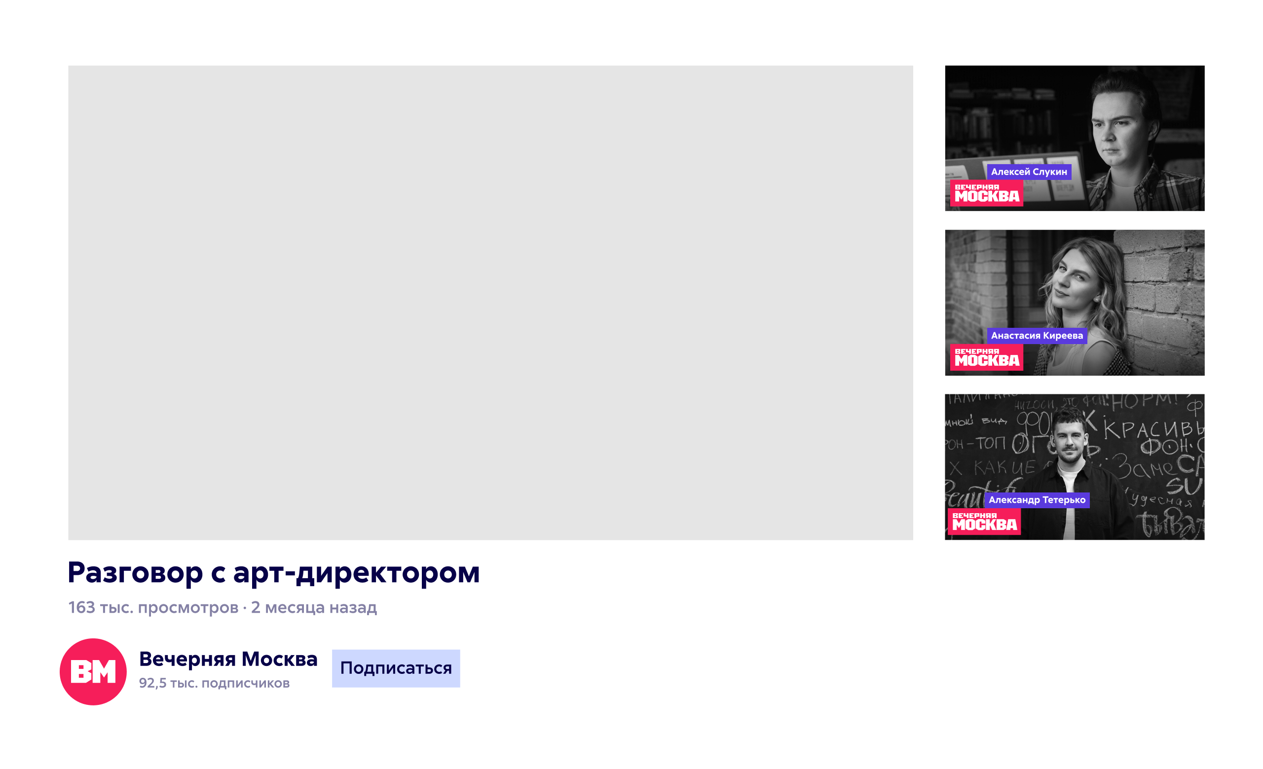 Фирменная черта «Вечерки» — плашки, по которым издание узнается даже быстрее, чем по логотипу. Цветной прямоугольник символизирует любую единицу контента: газетную колонку, видеоролик, блок в телеэфире, пост в соцсети. Такие блоки укладываются в общую сетку контента и становятся основными инструментами айдентики.