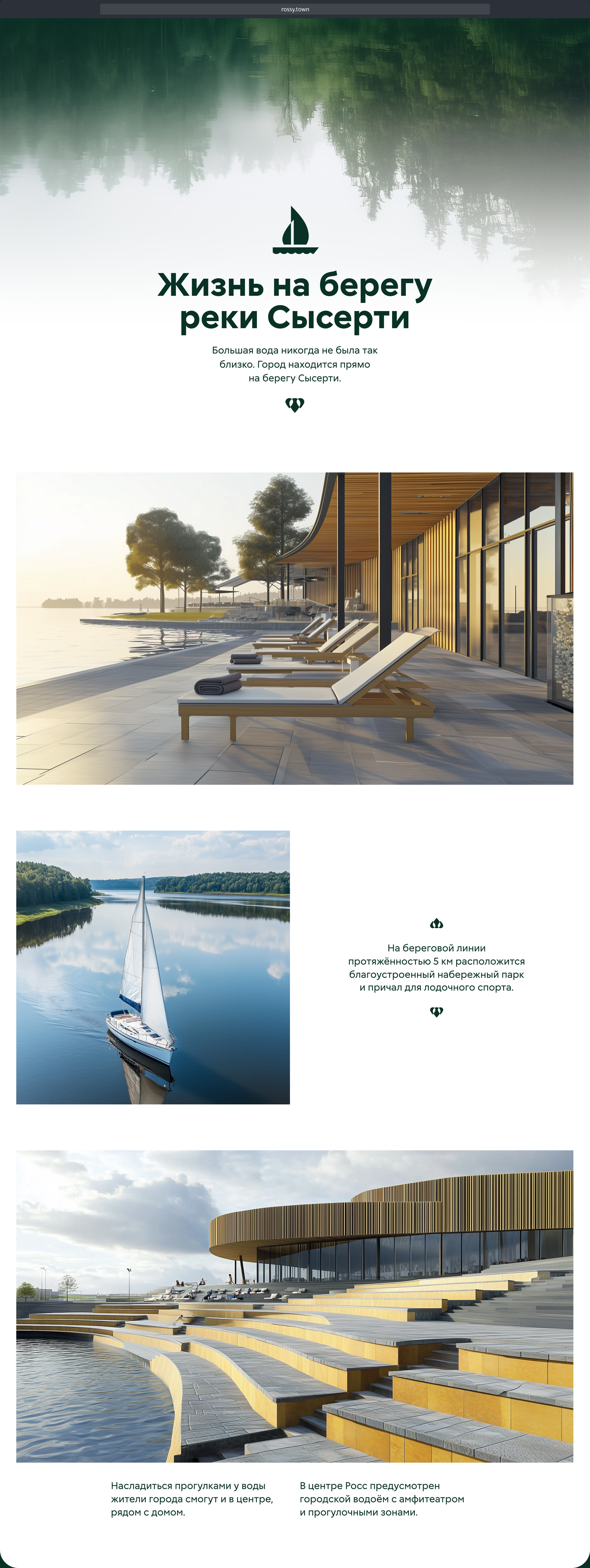 Компания «Вилладжио» начинает строительство города-курорта под Екатеринбургом. Россы появятся в экологически чистой зоне на берегу реки Сысерти в окружении уральских лесов. В студии для города задизайнили сайт, передающий атмосферу будущих кварталов.